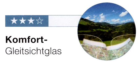 Komfortables Gleitsichtglas mit guten Abbildungseigenschafen. Annähernd freies Sichtfeld beim Blick in die Ferne. Der Zwischenbereich ist relativ breit und angenehm im Verlauf.